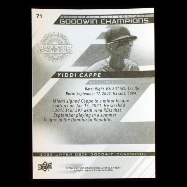 Yiddi Cappe 2022 Upper Deck Goodwin Champions Marlins