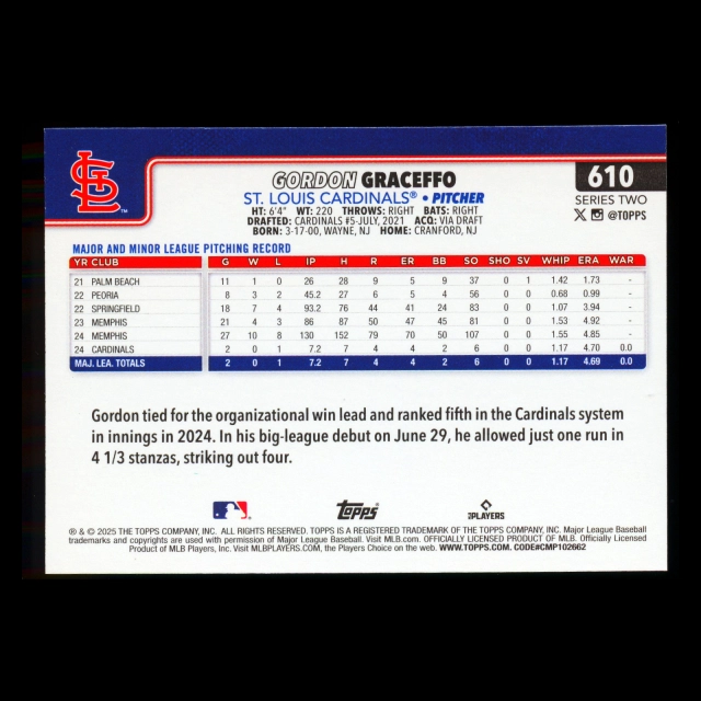 Gordon Graceffo RC 2025 Topps Rookie Cardinals