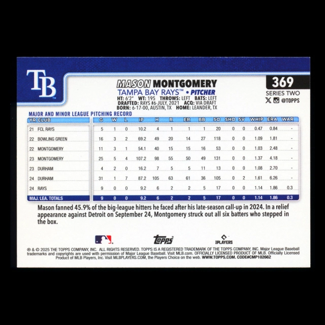 Mason Montgomery RC 2025 Topps Rookie Rays
