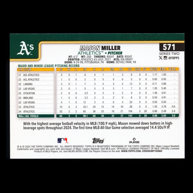 Mason Miller 2025 Topps All-Star Rookie Athletics
