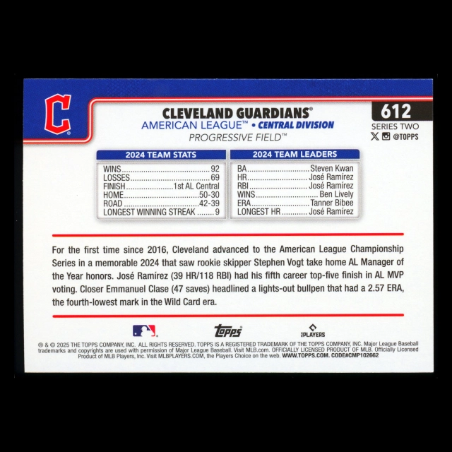 Cleveland Guardians 2025 Topps Team Card Guardians