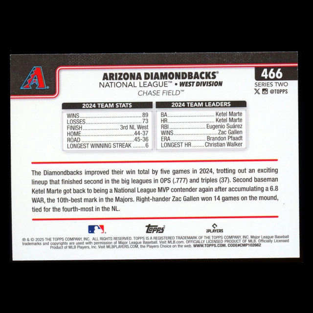 Arizona Diamondbacks 2025 Topps Team Card Diamondbacks