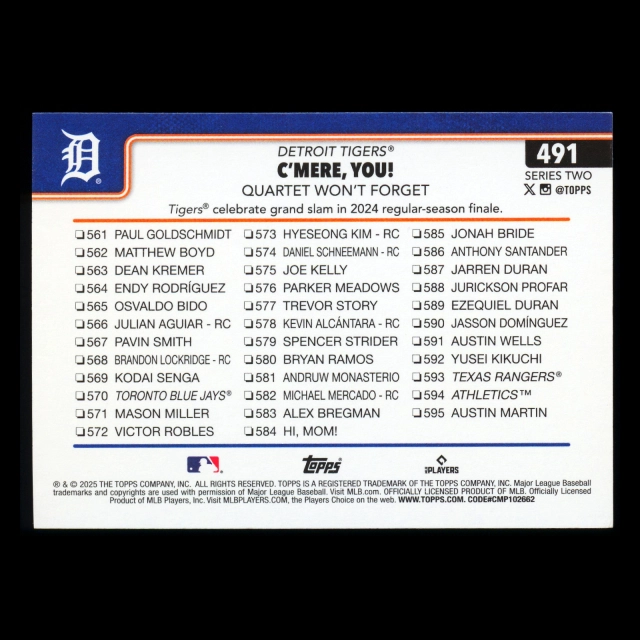 Spencer Torkelson 2025 Topps Checklist Tigers