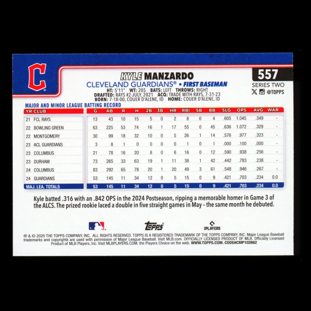 Kyle Manzardo 2025 Topps Future Stars Guardians