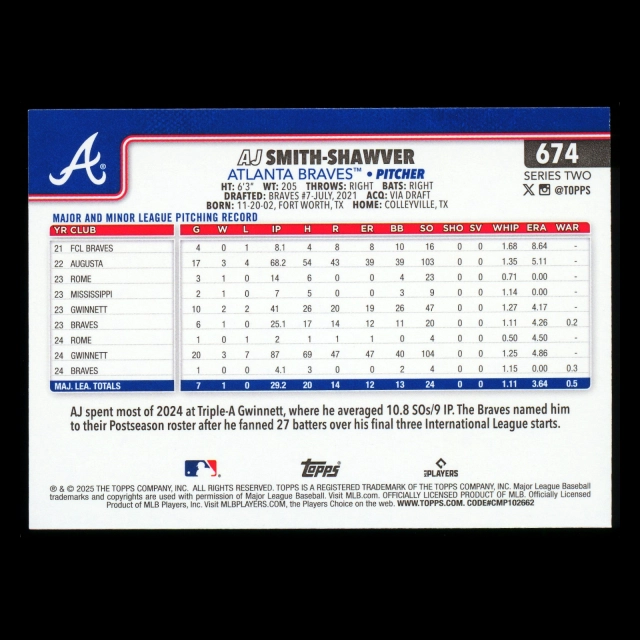 AJ Smith-Shawver 2025 Topps Future Stars Braves