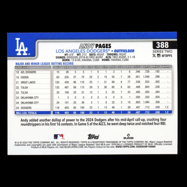Andy Pages 2025 Topps Future Stars Dodgers