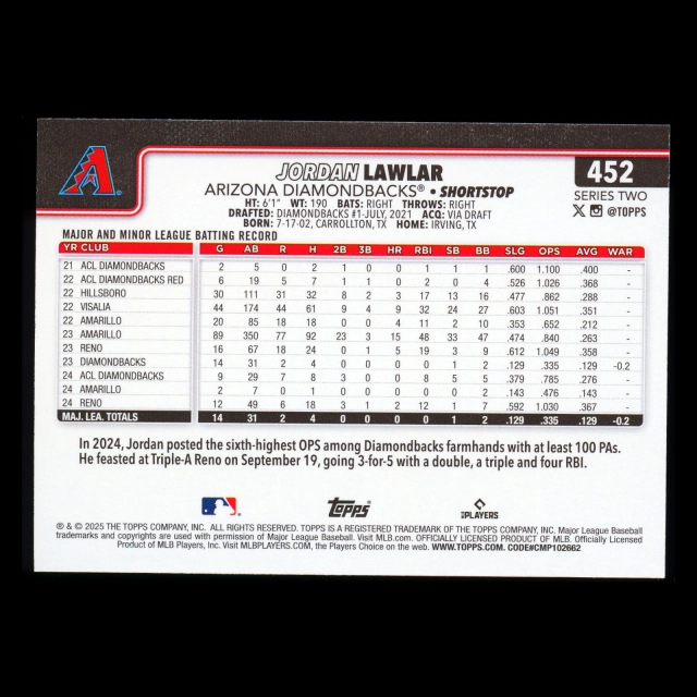 Jordan Lawlar 2025 Topps Future Stars Diamondbacks