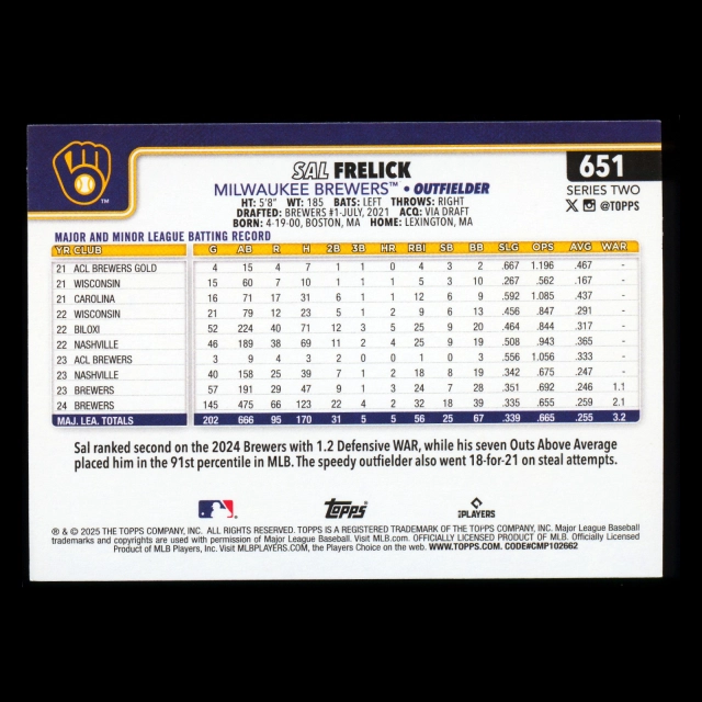 Sal Frelick 2025 Topps Future Stars Brewers