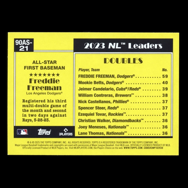 Freddie Freeman 2025 Topps '90 Topps All Star Retro Dodgers