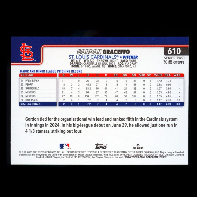 Gordon Graceffo RC 2025 Topps Sandglitter Rookie Cardinals