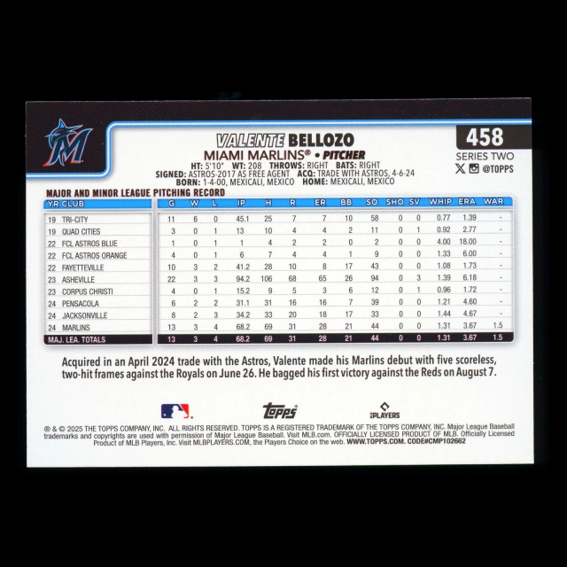 Valente Bellozo 2025 Topps Rainbow Foil Marlins