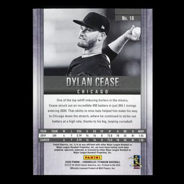 Dylan Cease RC 2020 Chronicles Titanium Rookie White Sox