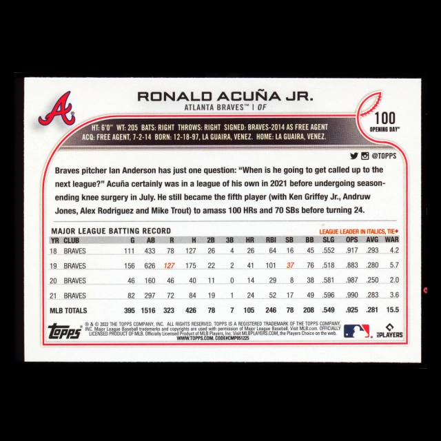 Ronald Acuna Jr. 2022 Topps Opening Day Braves
