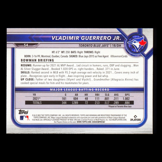Vladimir Guerrero Jr. 2022 Bowman Blue Jays