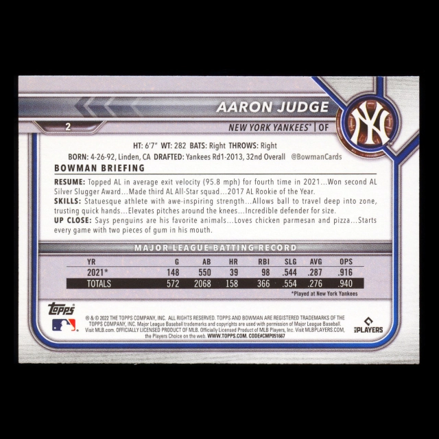 Aaron Judge 2022 Bowman Yankees