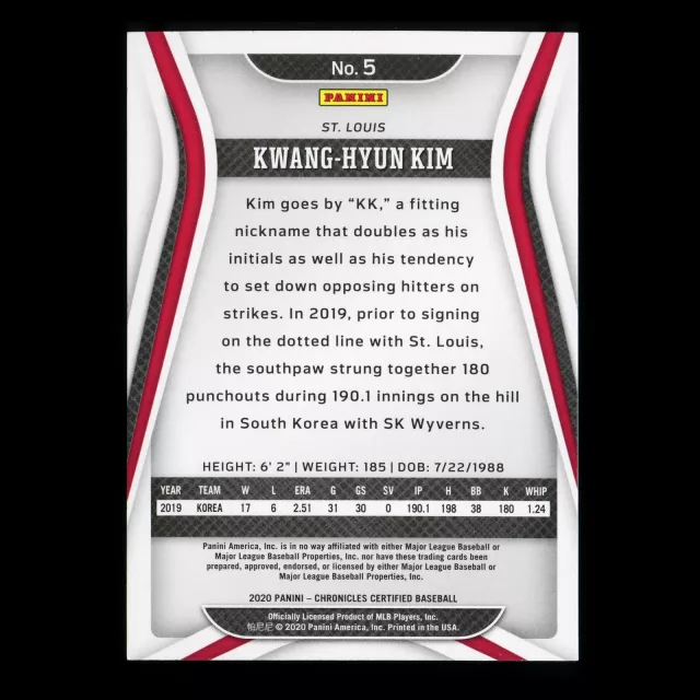 Kwang-Hyun Kim RC 2020 Chronicles Certified Rookie Cardinals