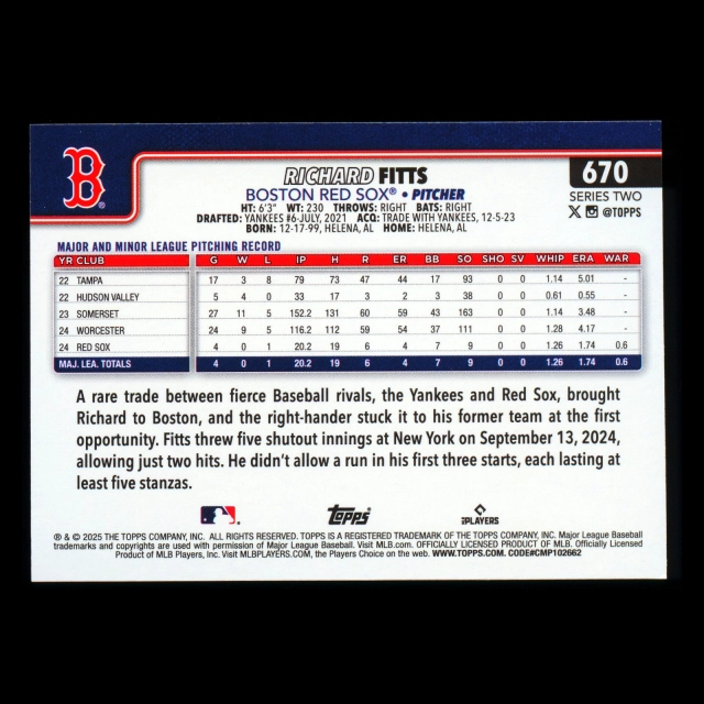 Richard Fitts RC 2025 Topps Diamante Foil Rookie Red Sox
