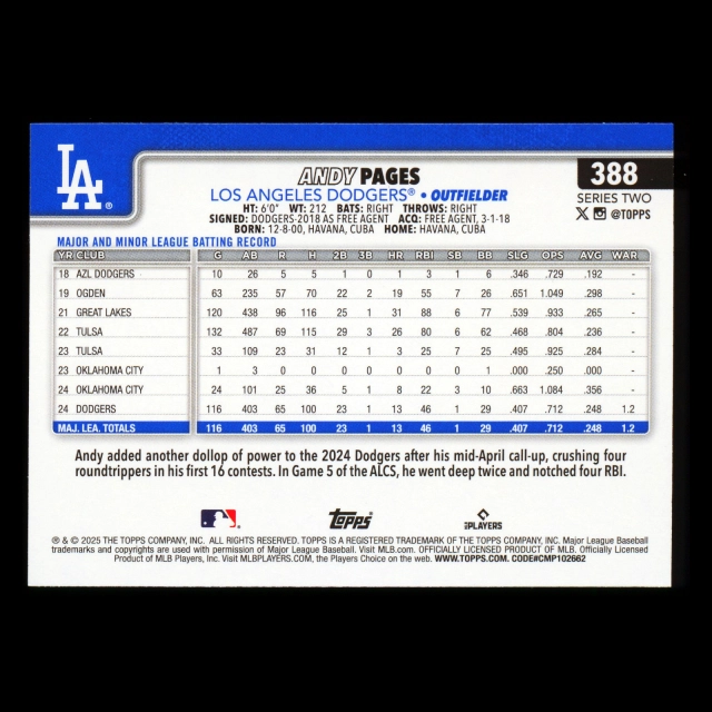 Andy Pages 2025 Topps Future Stars Dodgers