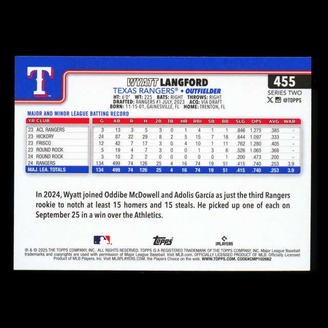 Wyatt Langford 2025 Topps Rangers