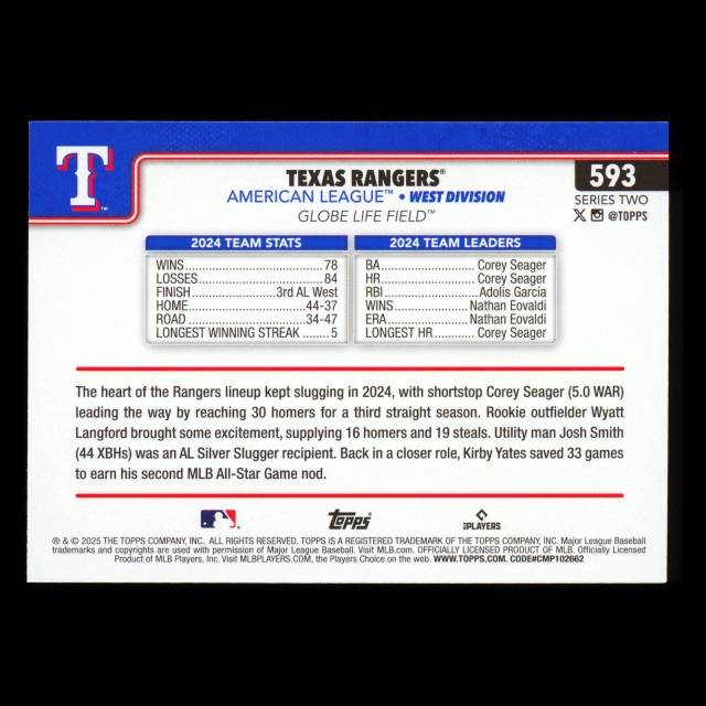 Texas Rangers 2025 Topps Team Card Rangers