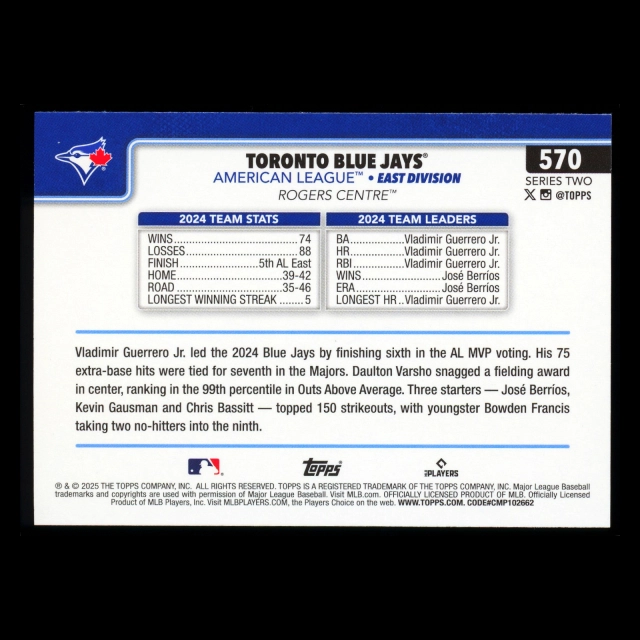 Toronto Blue Jays 2025 Topps Team Card Blue Jays