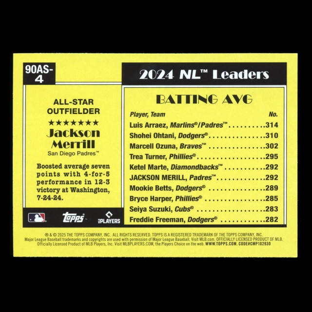 Jackson Merrill 2025 Topps '90 Topps All Star Rooklie Padres