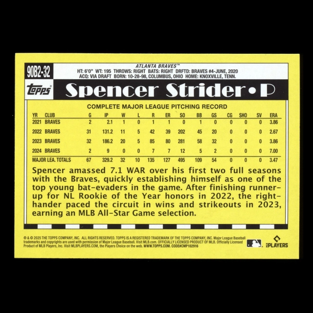 Spencer Strider 2025 Topps '90 Topps Series 2 Braves