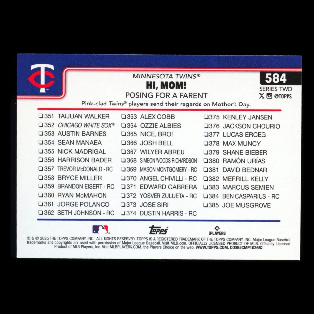 Carlos Correa 2025 Topps Checklist Rainbow Foil Twins