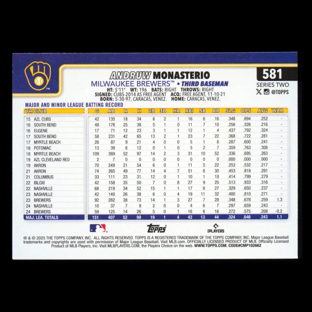 Andruw Monasterio 2025 Topps Diamante Foil Brewers