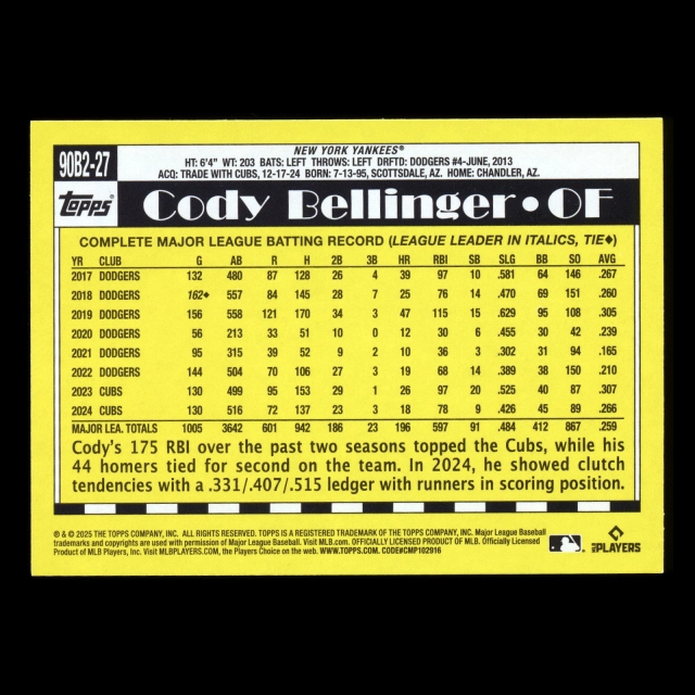 Cody Bellinger 2025 Topps '90 Topps Series 2 Yankees