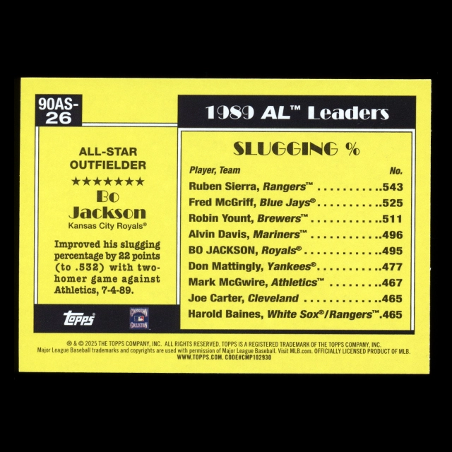 Bo Jackson 2025 Topps '90 Topps All Star Royals