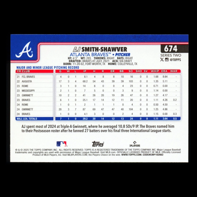 AJ Smith-Shawver 2025 Topps Future Stars Braves