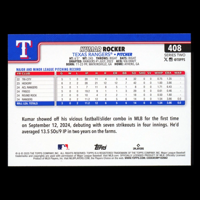 Kumar Rocker RC 2025 Topps Rookie Rangers