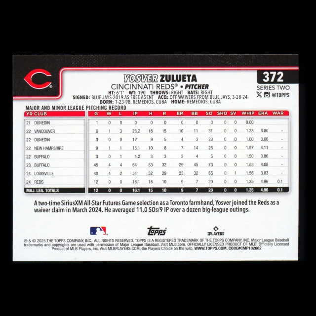 Yosver Zulueta RC 2025 Topps Rookie Reds