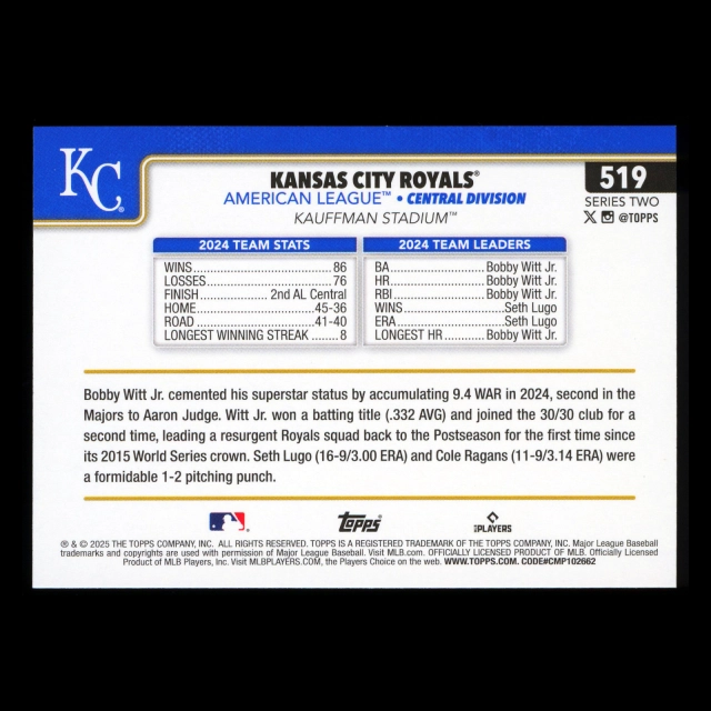 Kansas City Royals 2025 Topps Team Card Royals