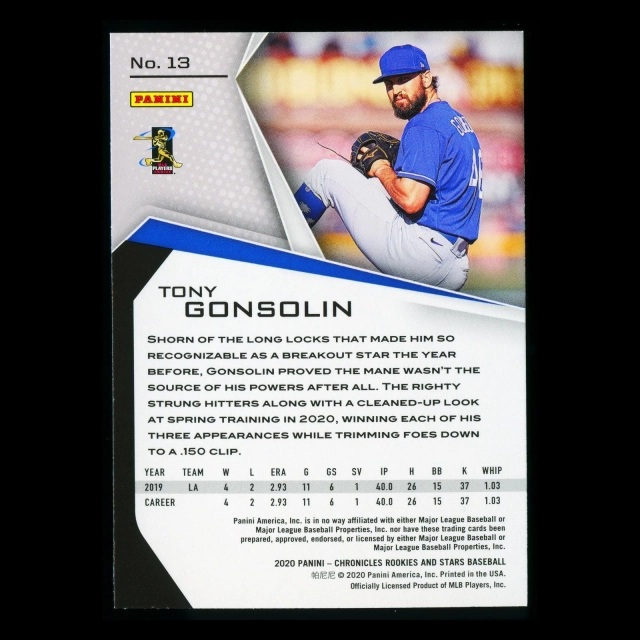 Tony Gonsolin RC 2020 Chronicles Rookies & Stars Rookie Dodgers