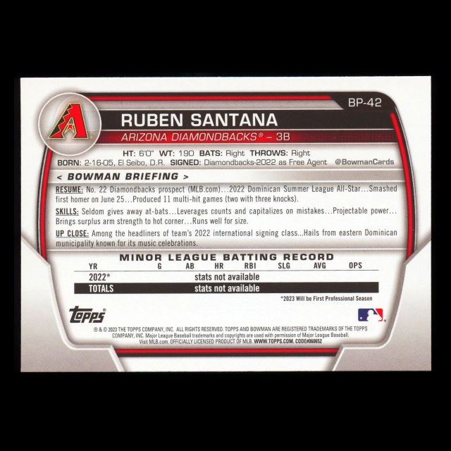 Ruben Santana 2023 Bowman Prospects Diamondbacks