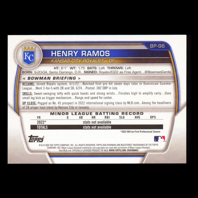 Henry Ramos 2023 Bowman Prospects Royals