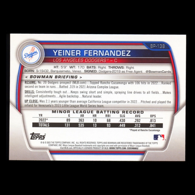 Yeiner Fernandez 2023 Bowman Prospects Dodgers
