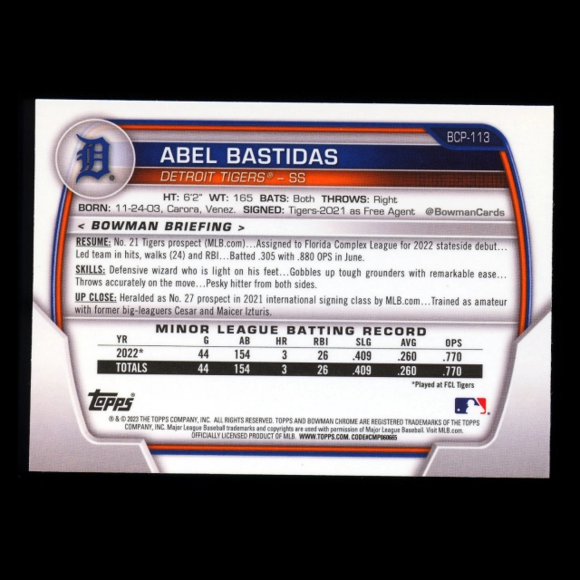 Abel Bastidas 2023 Bowman Chrome Prospects Tigers