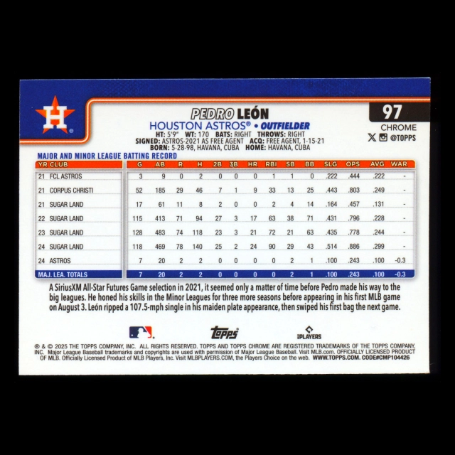 Pedro Leon RC 2025 Topps Chrome Logofractor Rookie Astros