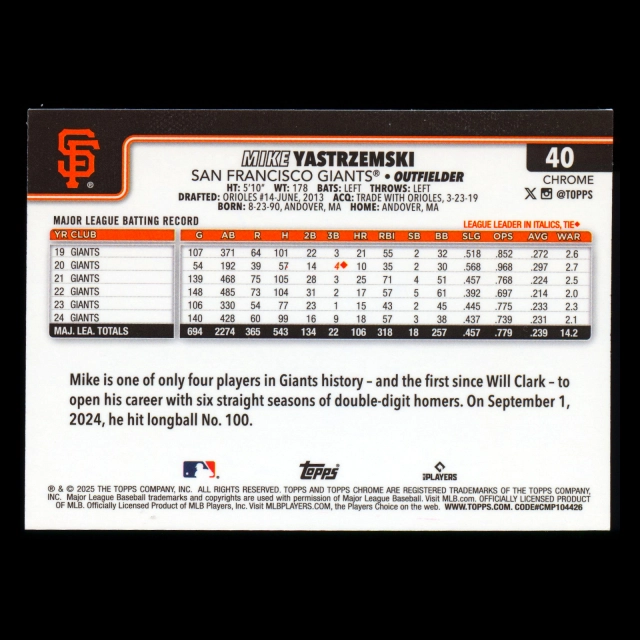 Mike Yastrzemski 2025 Topps Chrome Logofractor Giants
