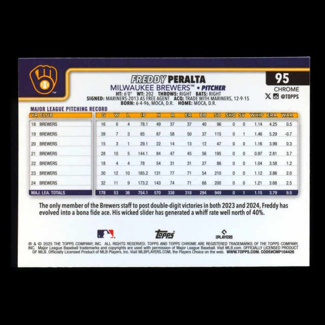 Freddy Peralta 2025 Topps Chrome Logofractor Brewers