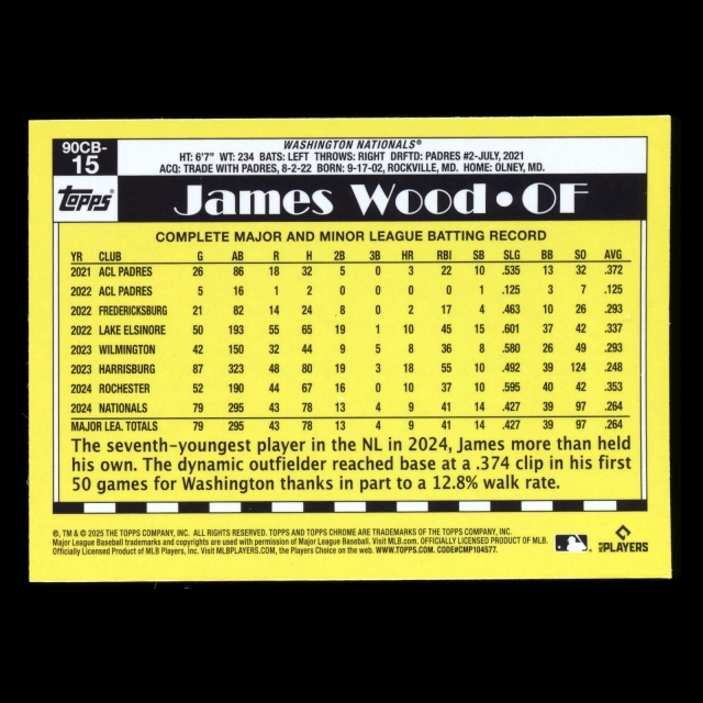 James Wood RC 2025 Topps Chrome Logofractor '90 Topps Rookie Nationals