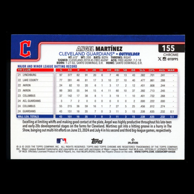 Angel Martnez RC 2025 Topps Chrome Rookie Guardians