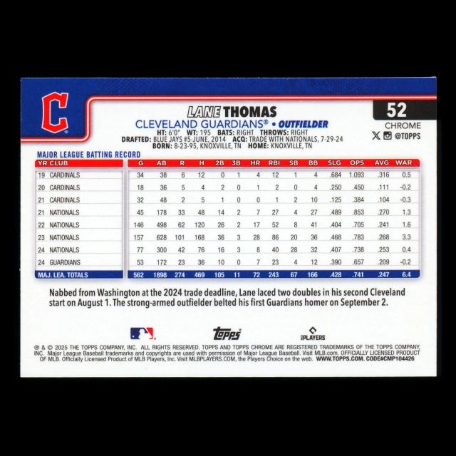 Lane Thomas 2025 Topps Chrome Guardians