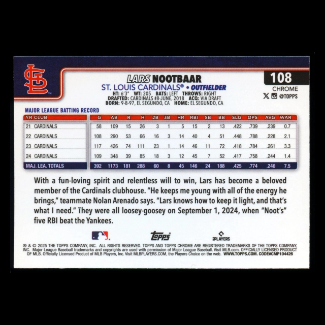 Lars Nootbaar 2025 Topps Chrome Cardinals