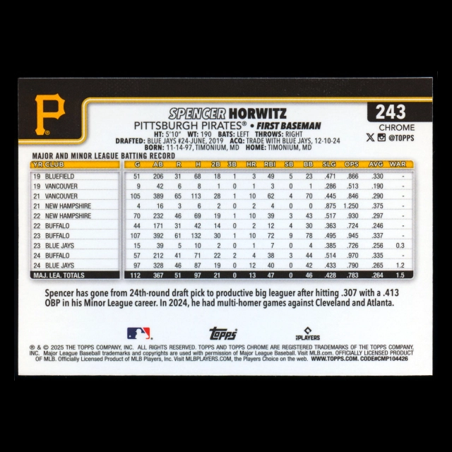 Spencer Horwitz 2025 Topps Chrome Pirates
