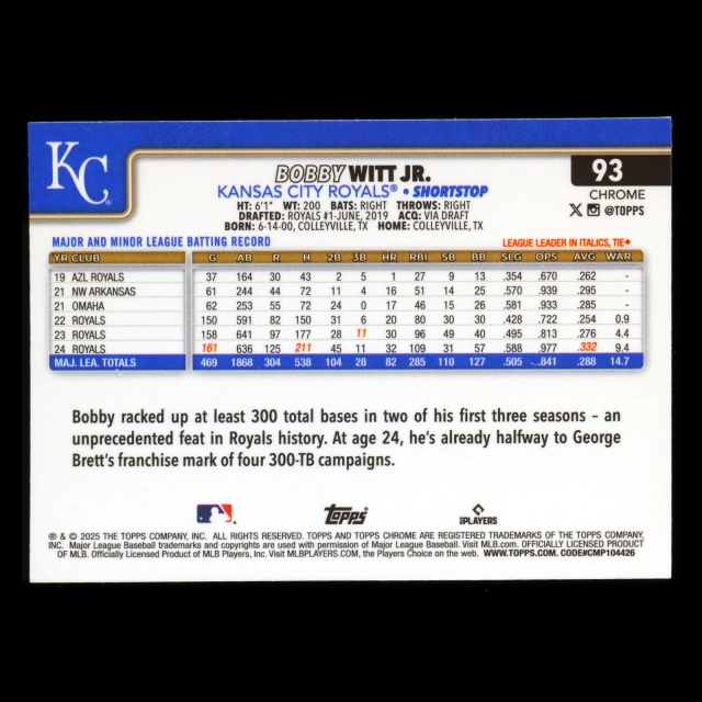 Bobby Witt Jr. 2025 Topps Chrome Royals