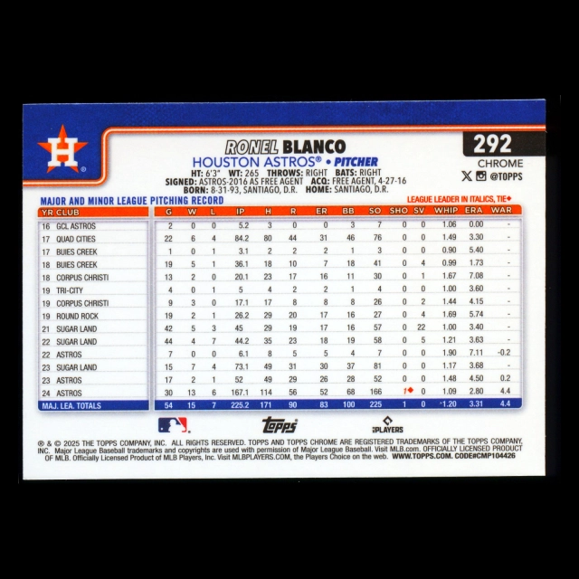 Ronel Blanco 2025 Topps Chrome Astros
